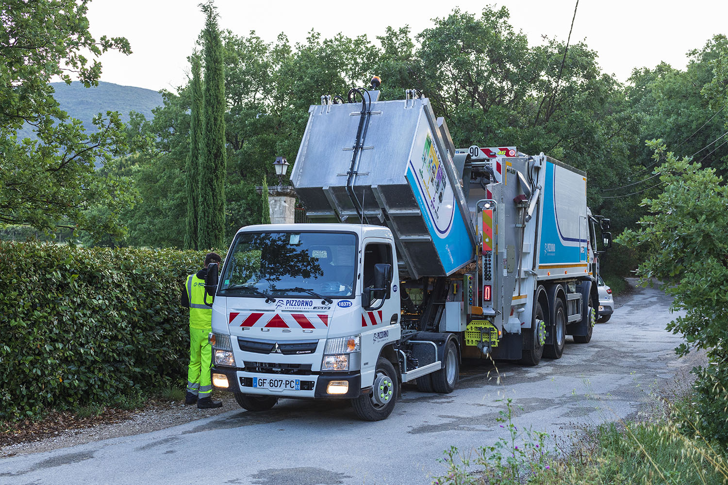Jardin moderne avec camion de service.