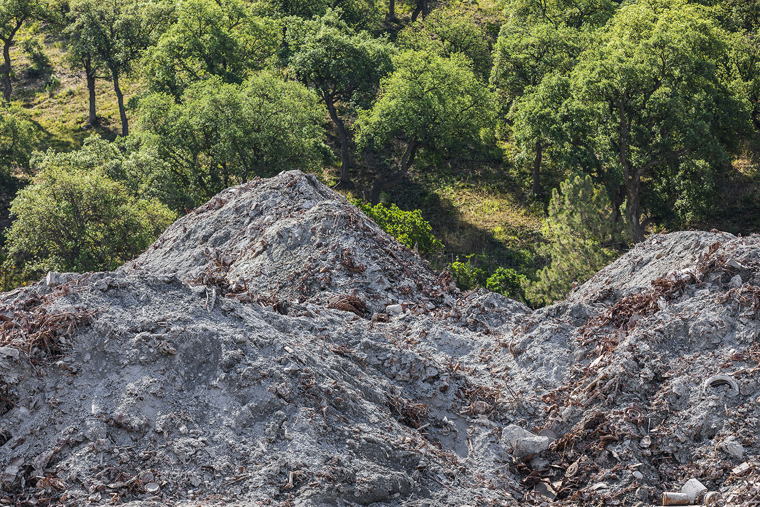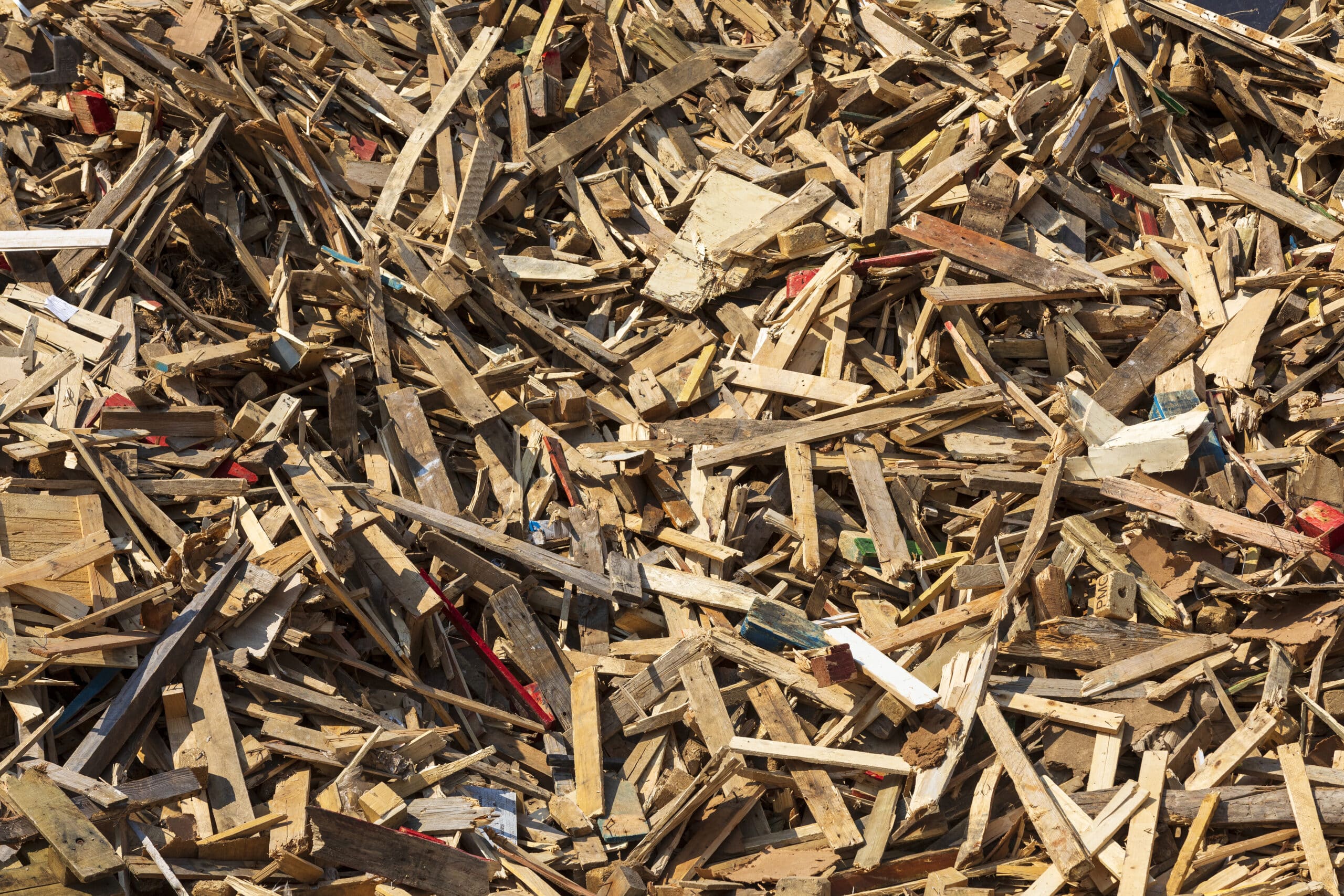 Débris de bois en désordre.